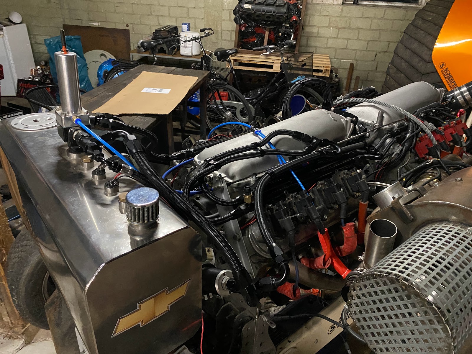 While Jannis is still dealing with the aftermath of the 'rona, Malle did a beautiful job with our throttle linkage, got the timing cover and balancer back on the front engine and I took care of the injection system.